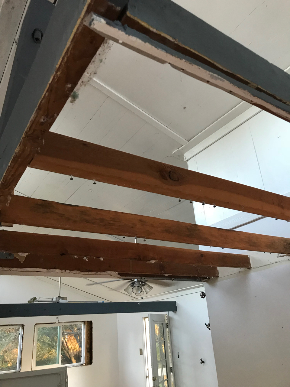 Our next step on the loft was to contract out the big work. We met with a number of contractors who would come up, look at the project, quote you for a bunch of stuff you didn’t ask for or want, then act totally dejected when you said no. We ended up signing papers with two different contractors, one who put a new lighter colored asphalt roof on, and another who replaced the ancient aluminum framed single paned windows and put insulated vinyl siding on.
