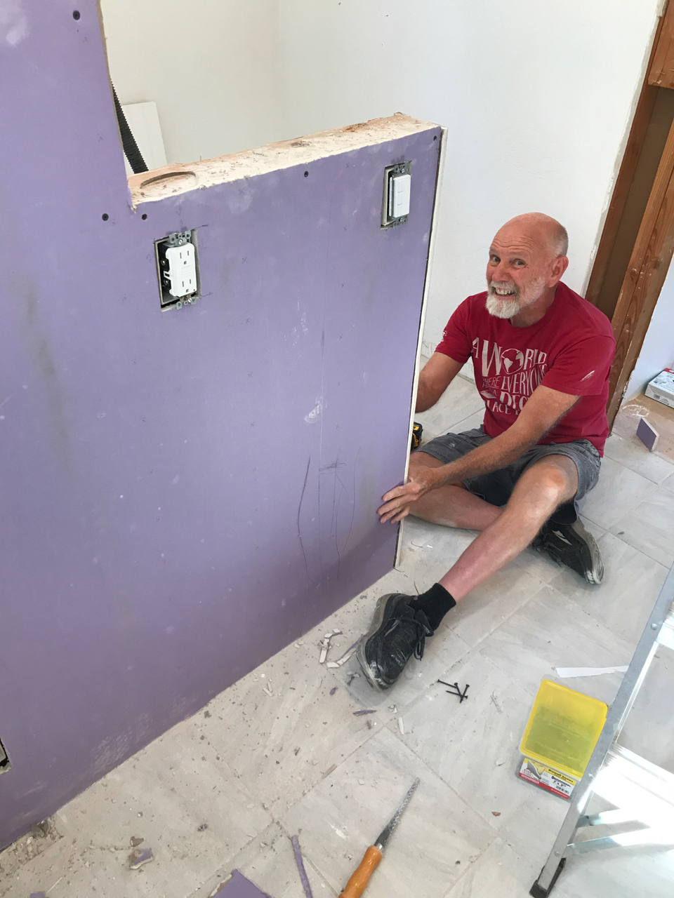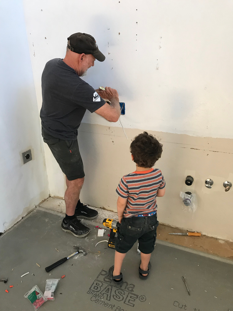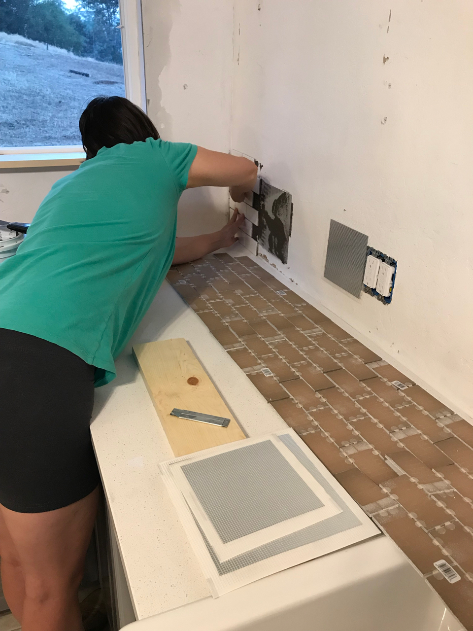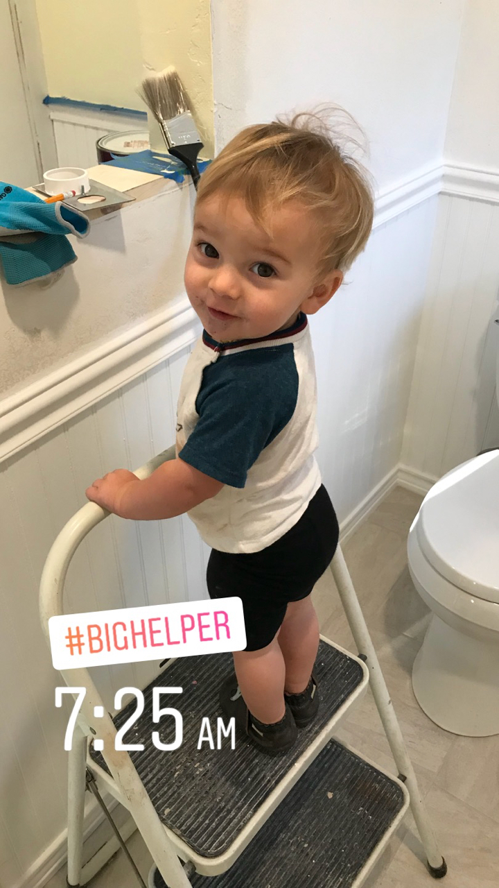 Slowly we would haul all of the items up the hillside and into the loft. We began fitting all of the puzzle pieces together, redoing the flooring, laying tile, adding in the new fixtures, putting up wainscoting, repairing drywall, building cabinets, tiling backsplash and painting. Each new element drove us to keep going as we got closer to finishing the space. Family would come for a weekend at a time and work hard with us as we drove towards the finish line. Our to do list, which was overwhelming at first, was being whittled down.