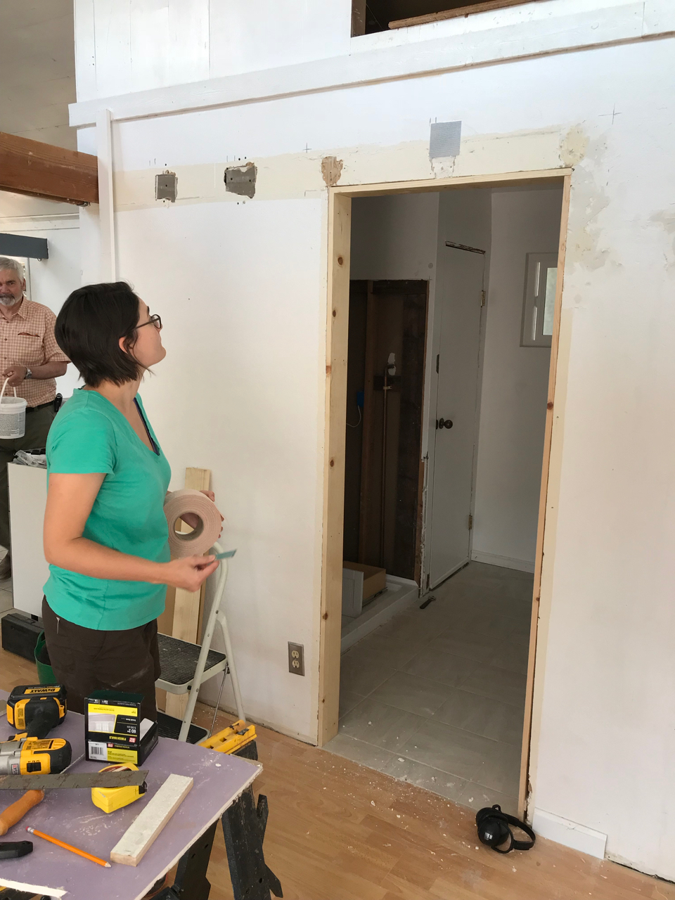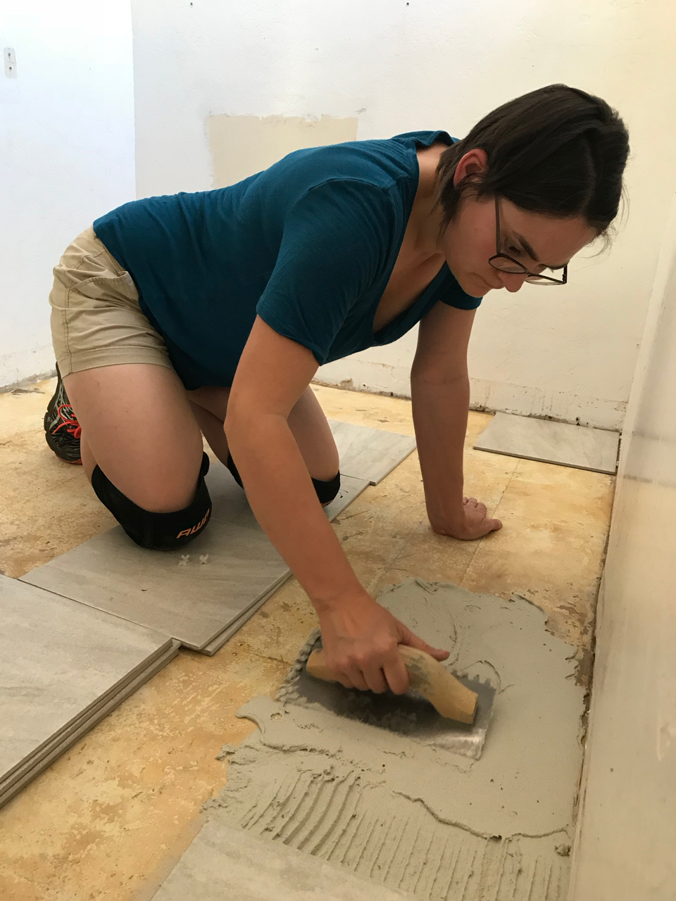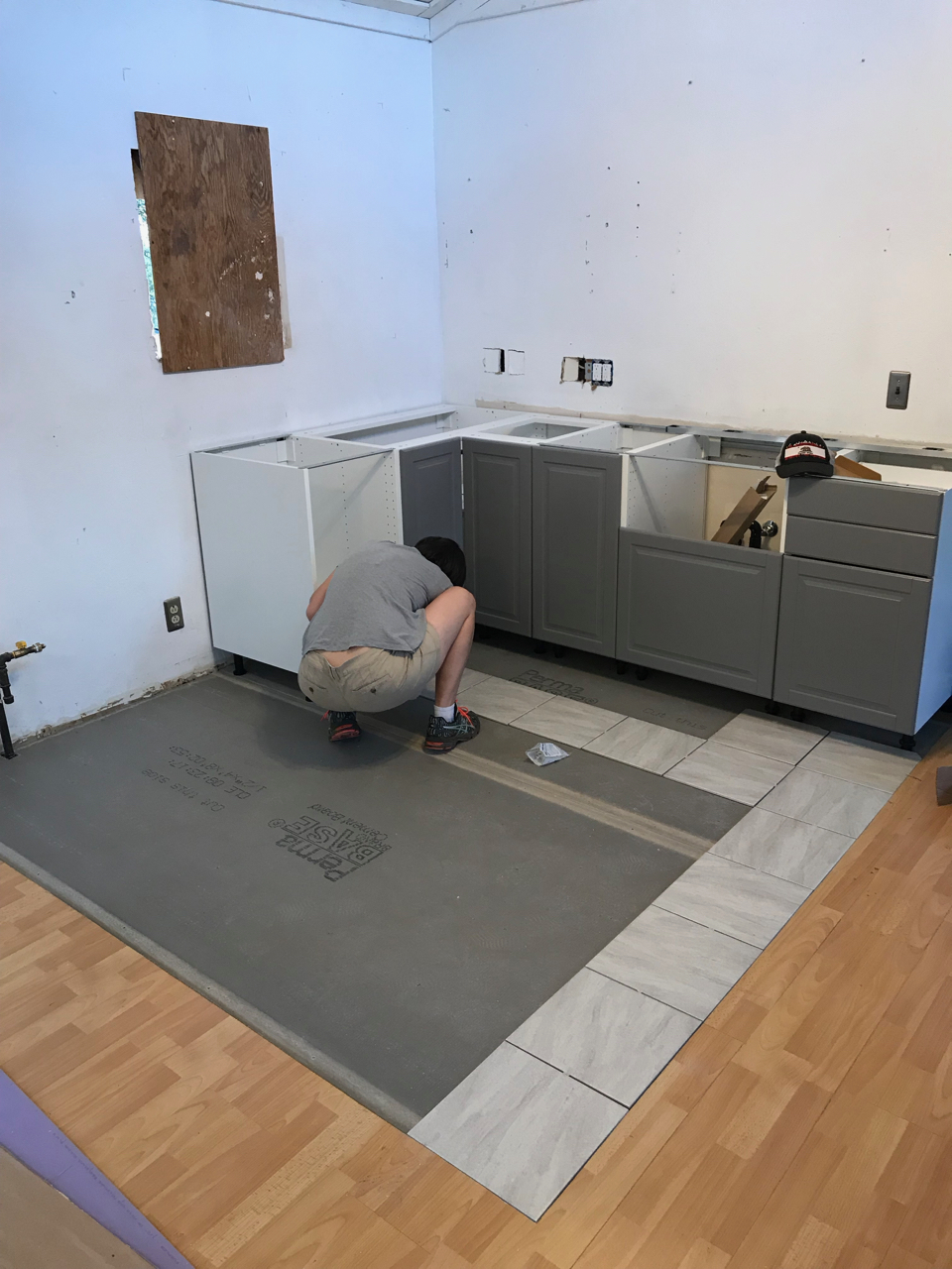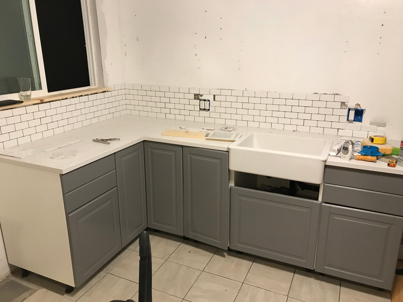 Slowly we would haul all of the items up the hillside and into the loft. We began fitting all of the puzzle pieces together, redoing the flooring, laying tile, adding in the new fixtures, putting up wainscoting, repairing drywall, building cabinets, tiling backsplash and painting. Each new element drove us to keep going as we got closer to finishing the space. Family would come for a weekend at a time and work hard with us as we drove towards the finish line. Our to do list, which was overwhelming at first, was being whittled down.
