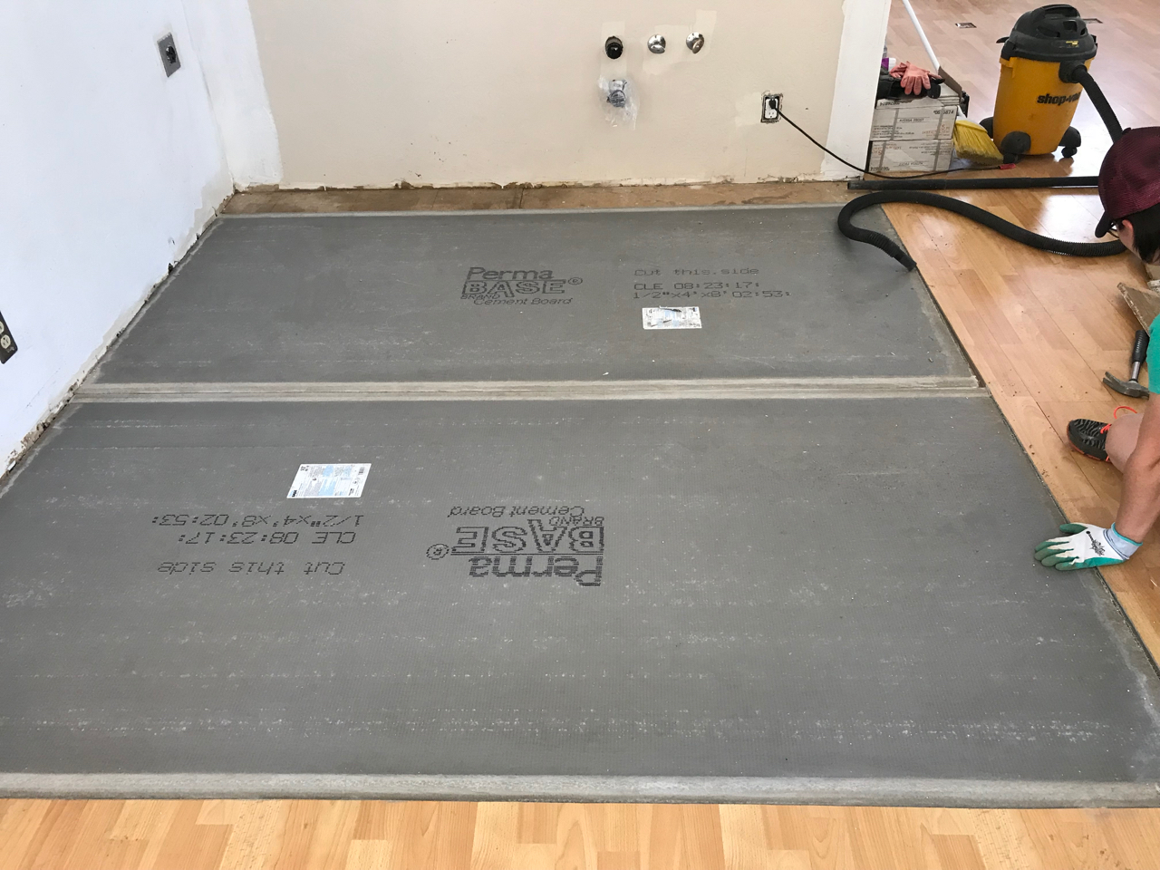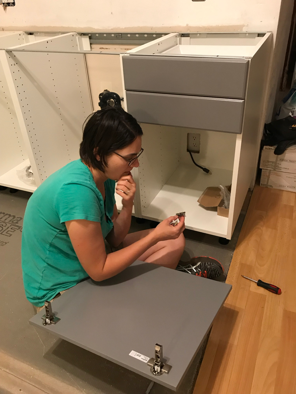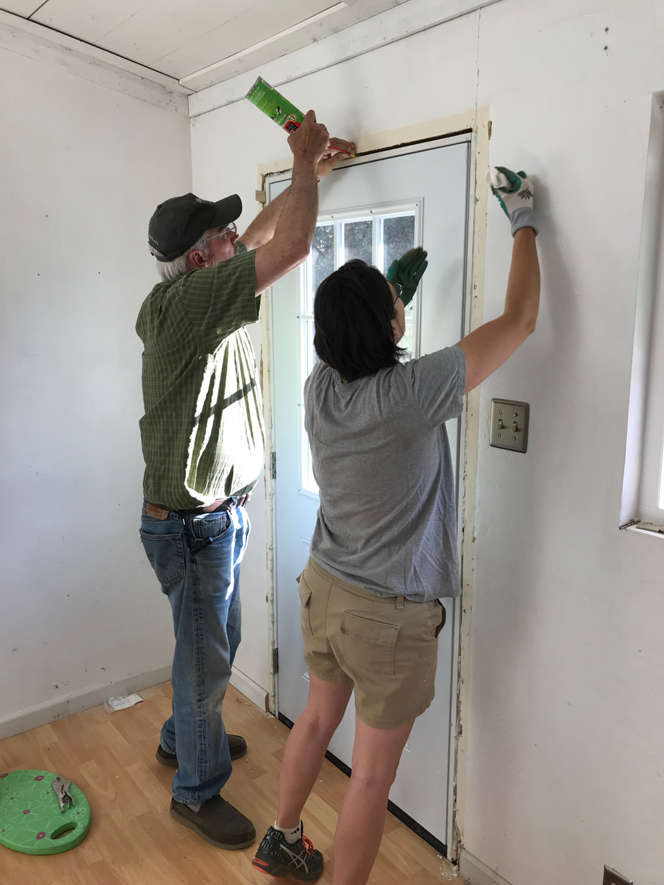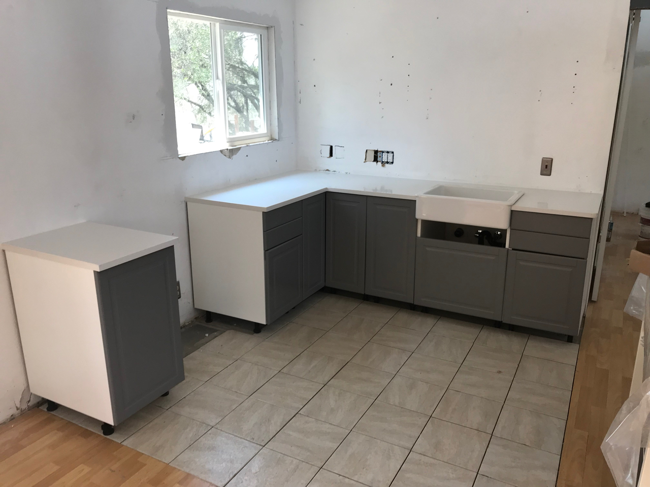 Slowly we would haul all of the items up the hillside and into the loft. We began fitting all of the puzzle pieces together, redoing the flooring, laying tile, adding in the new fixtures, putting up wainscoting, repairing drywall, building cabinets, tiling backsplash and painting. Each new element drove us to keep going as we got closer to finishing the space. Family would come for a weekend at a time and work hard with us as we drove towards the finish line. Our to do list, which was overwhelming at first, was being whittled down.