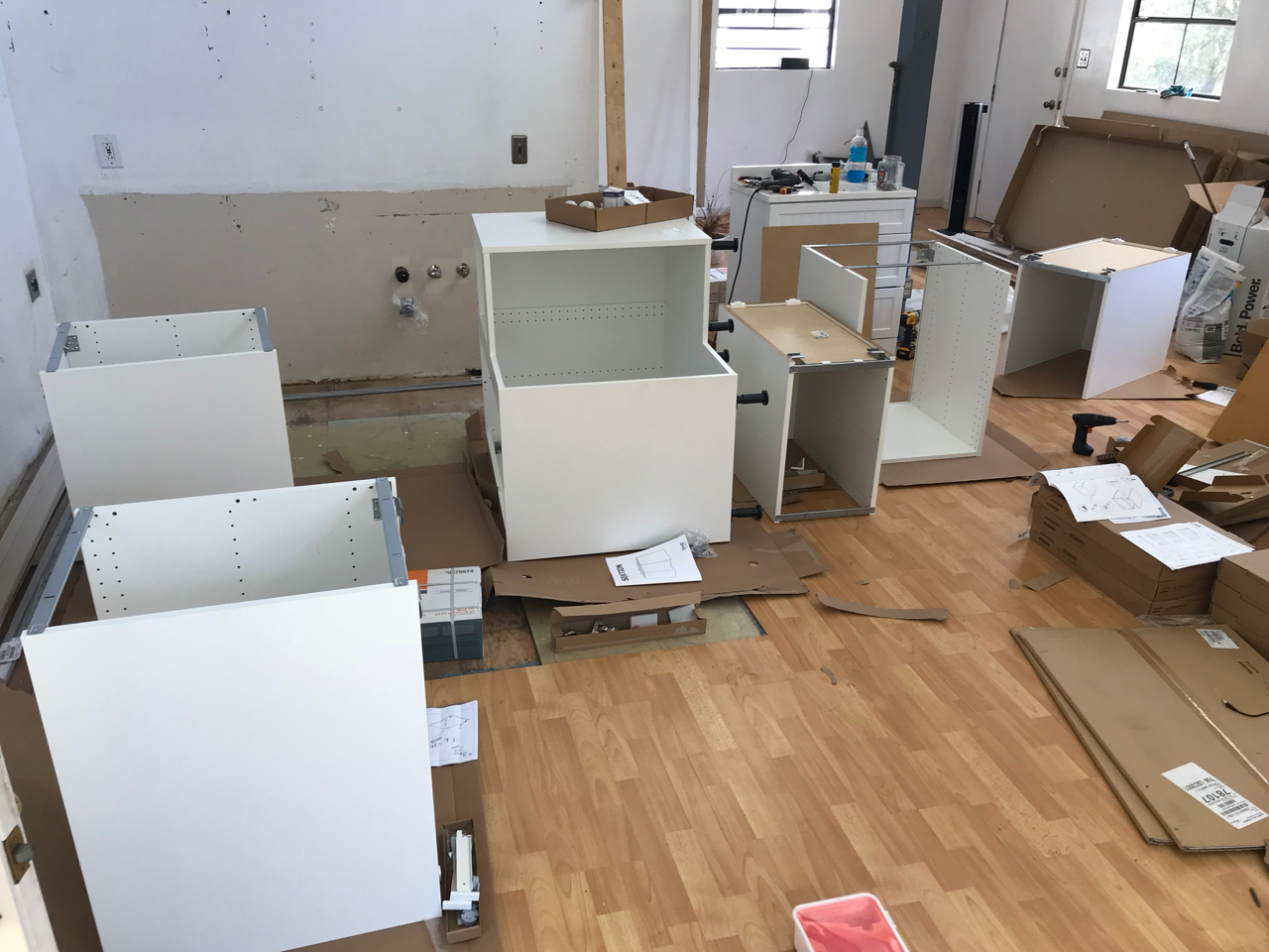 With demolition done and the shell of the building set, it was time for us to begin creating our vision. From the moment we walked into the loft we could see what we wanted it to be, now it was time to actually start making that vision a reality. Large trucks began arriving with boxes of materials, counters, appliances and furniture all of which seemed to pile up in the driveway. The boys would excitedly ask how big the truck was that was coming today.